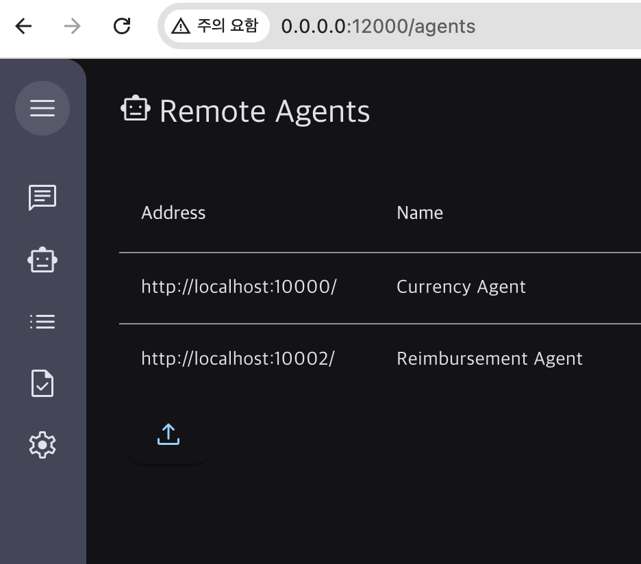 얘는 http://localhost:10002에서 돌아감. 위랑 마찬가지로 .agent.json에서 상세 정보 확인 가능.