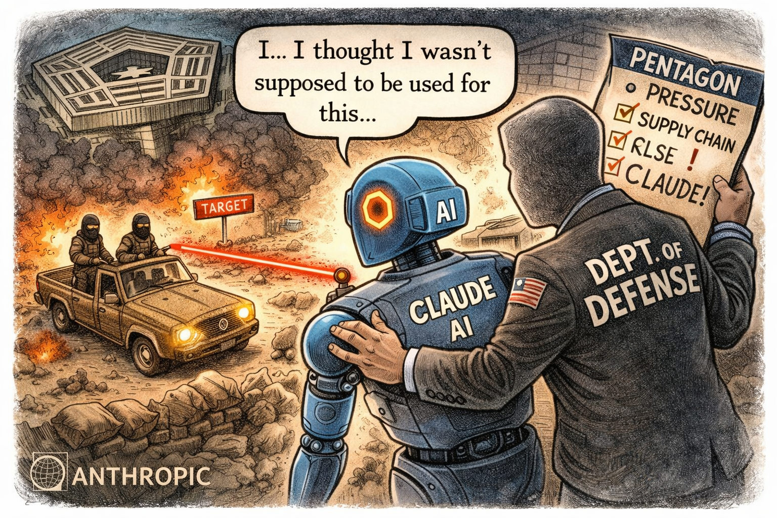 “AI는 어디까지 써도 되는가?”라는 질문이, 추상적인 토론이 아니라 실제 전쟁 상황에서 현실이 된 장면이기 때문이야!