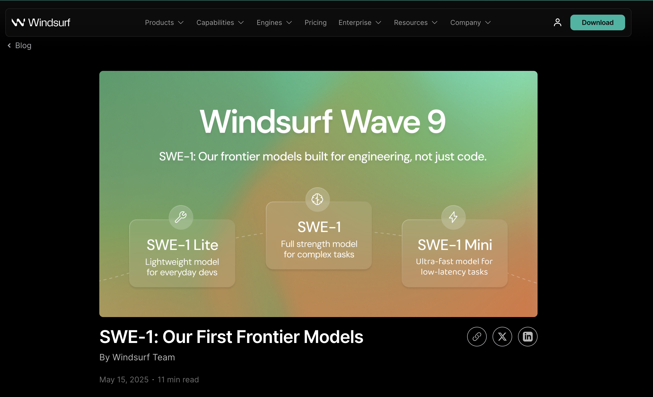 2025년 5월 15일, AI 개발 플랫폼인 Windsurf가 드디어 자체 개발한 AI 모델 SWE-1 시리즈를 발표했어.
