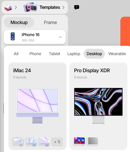 - 최신 아이폰부터 안드로이드, 태블릿, 맥북, 데스크톱, 애플워치까지 거의 모든 주요 디바이스 템플릿이 있어.