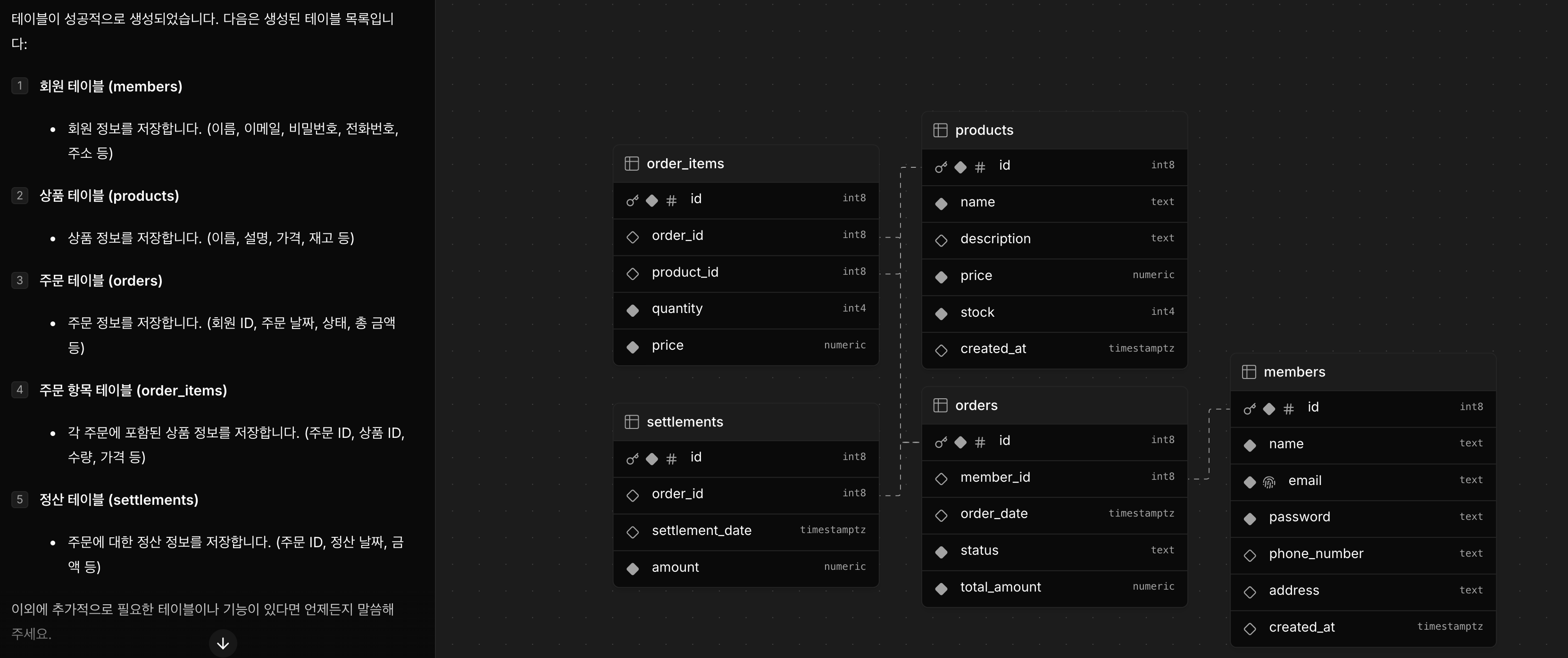 AI랑 대화하듯이 테이블을 만들고, 바로 쿼리 테스트도 할 수 있어.