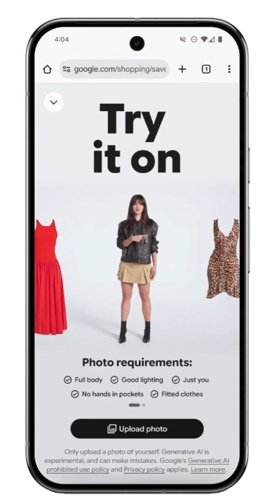 구글이 AI 기반 가상 착용(virtual try-on) 기능을 전 세계로 확장했어.