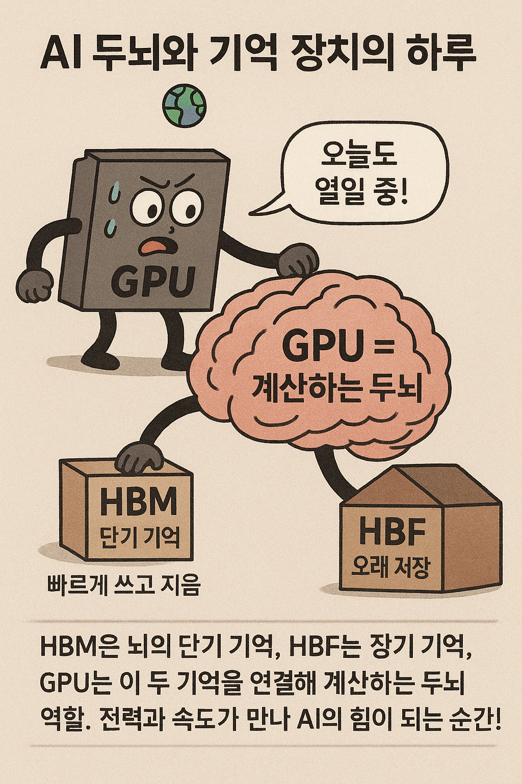 → HBM과 HBF가 기억을 저장하고 불러온다면, GPU는 그 데이터를 “이해하고 추론”하는 역할을 수행하니까 비유가 딱 맞지.