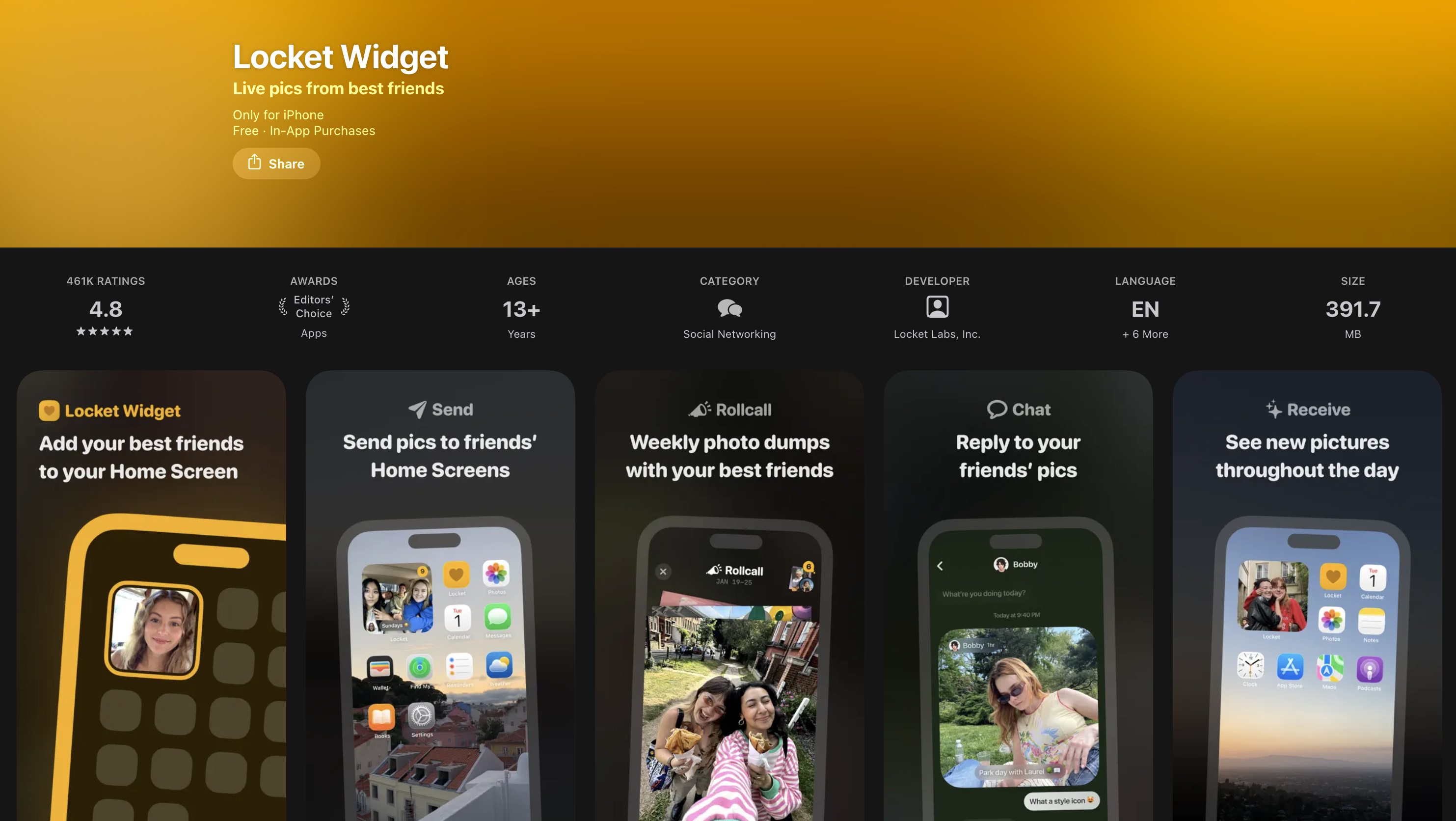 Locket은 이런 걸 아예 배제하고, 내가 직접 등록한 소수의 친구들(10~20명)과만 사진을 주고받는 구조야.