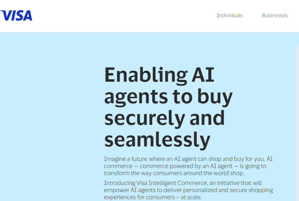 최근 Visa가 Intelligent Commerce라는 새로운 이니셔티브를 발표했어.