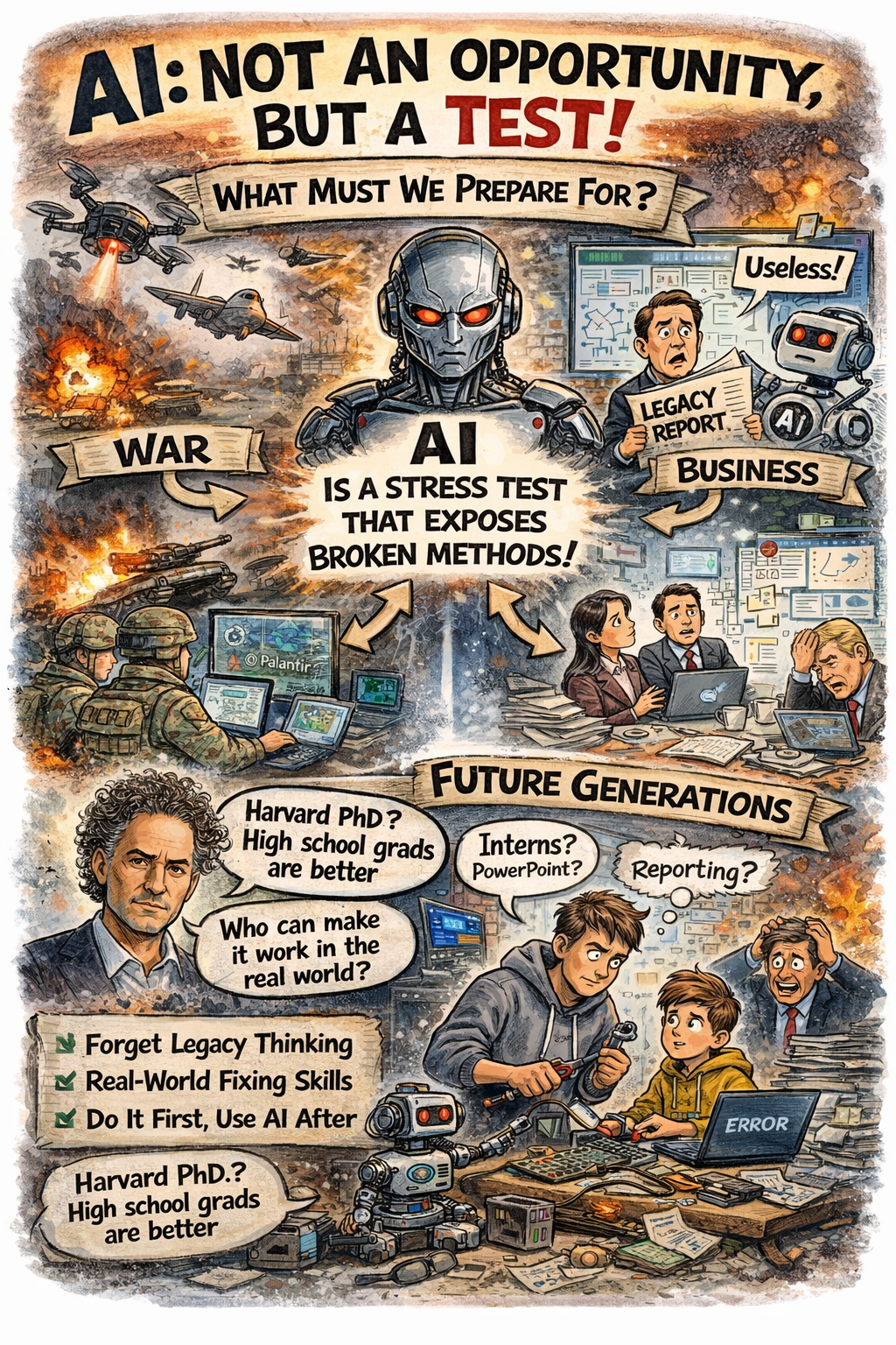 이 사람은 AI를 “도와주는 도구”가 아니라, 사람과 조직을 시험대 위에 올려놓는 장치로 보고 있어.