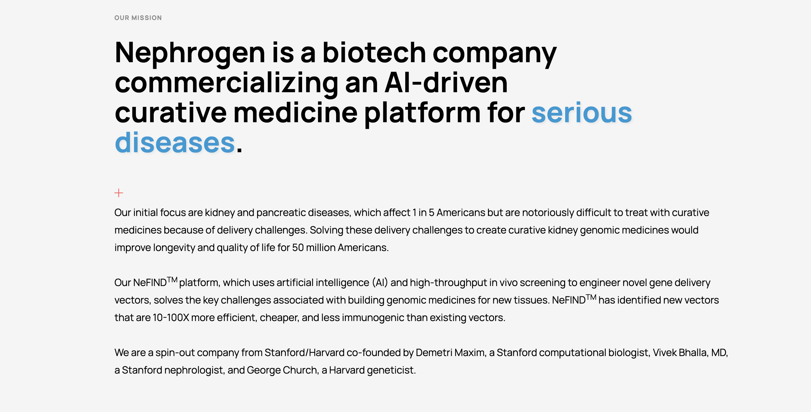 미국의 스타트업 네프로젠(Nephrogen) 이라는 회사가 AI와 유전자 치료를 결합해서,